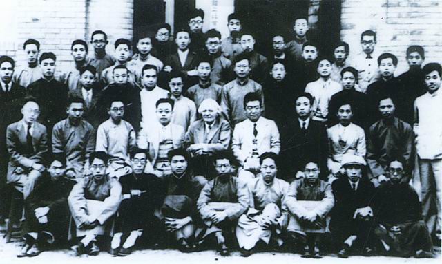 1936年北京mg冰球突破 地质系欢送毕业班。二排右起:金耀华、郁士元、何祚霖、谢家荣、葛利普、斯行健、高振西、王嘉萌、赵金科;四排右四为王鸿祯