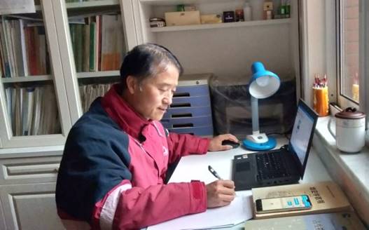 图2龚一鸣老师在给010181班等地mg冰球突破 的学生上《地史学》网课,20200228于武汉
