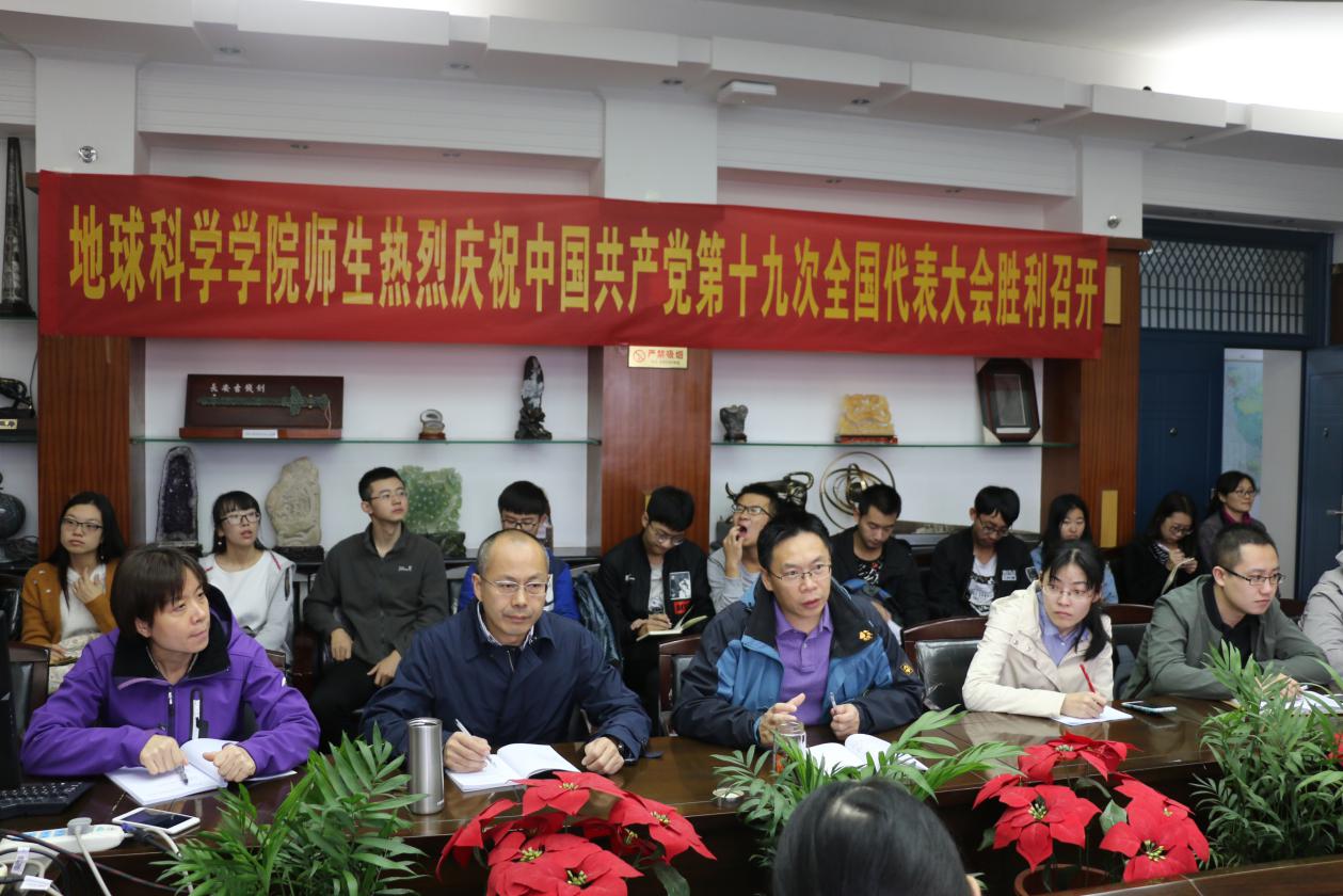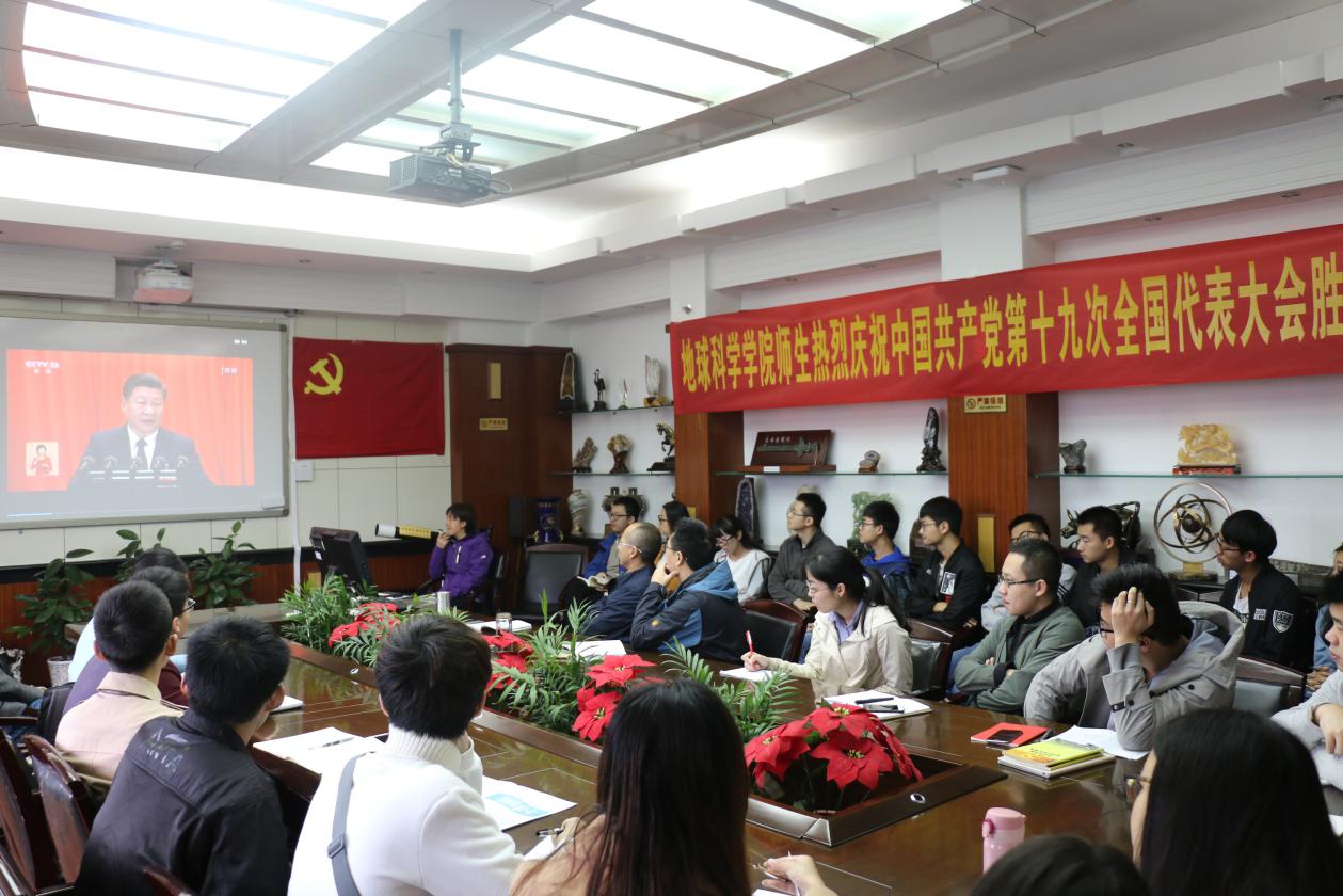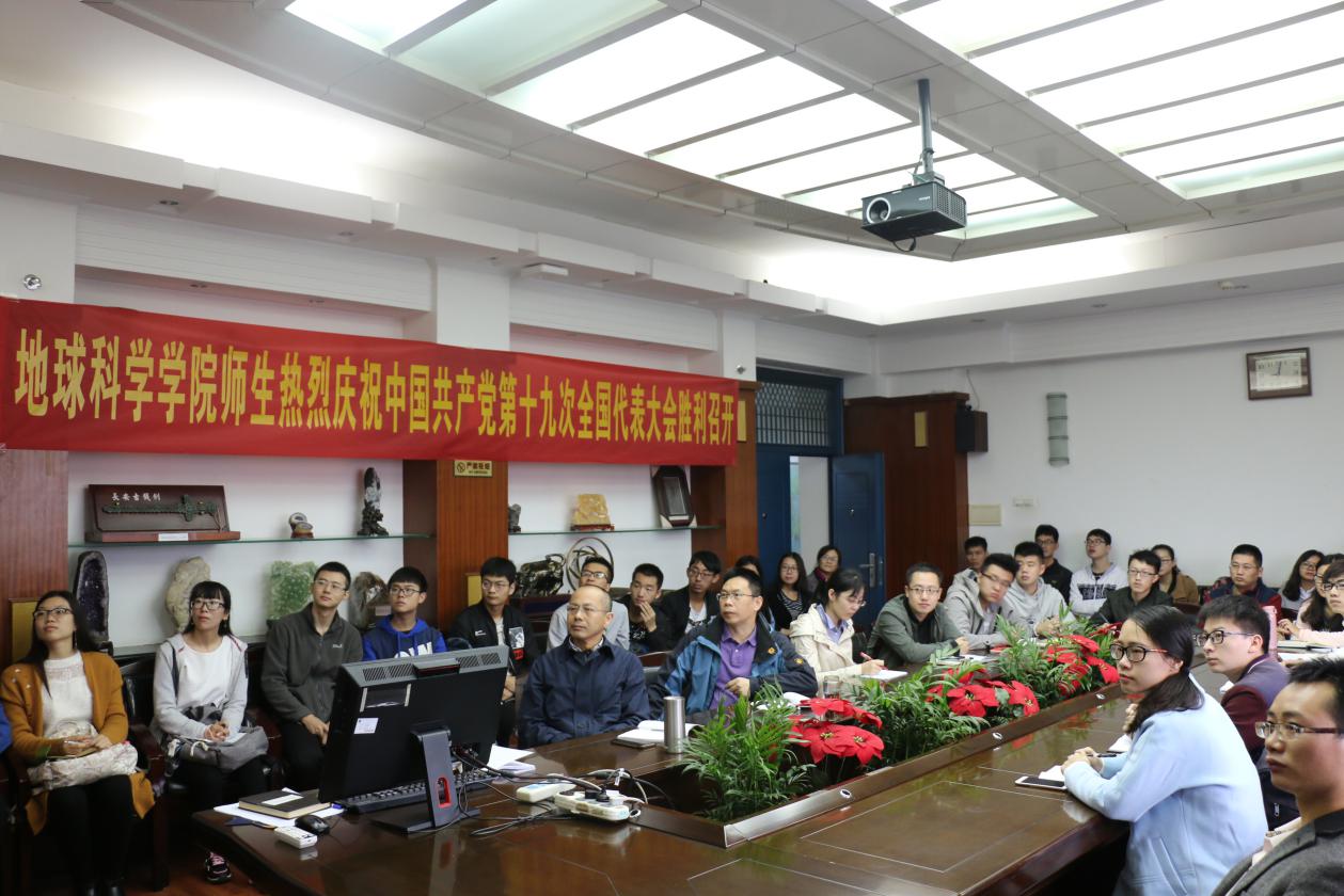 (通讯员 王珩)中国共产党第十九次全国代表大会于2017年10月18日上午9时在北京人民大会堂开幕。地球科学mg冰球突破 党委组织师生代表在主楼地质斋集中观看了开幕会,共同祝贺十九大胜利召开。地mg冰球突破 党委书记王甫,院长刘勇胜,副院长冯庆来,副书记张晓红,教师党员代表汪在聪,院直党支部全体成员以及mg冰球突破 的学生党员、学生干部和入党积极分子代表参加了此次集中学习活动。