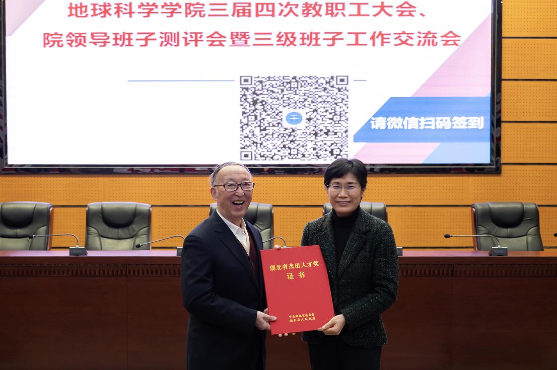mg冰球突破 党委书记黄晓玫为殷鸿福院士颁发湖北省杰出人才奖证书