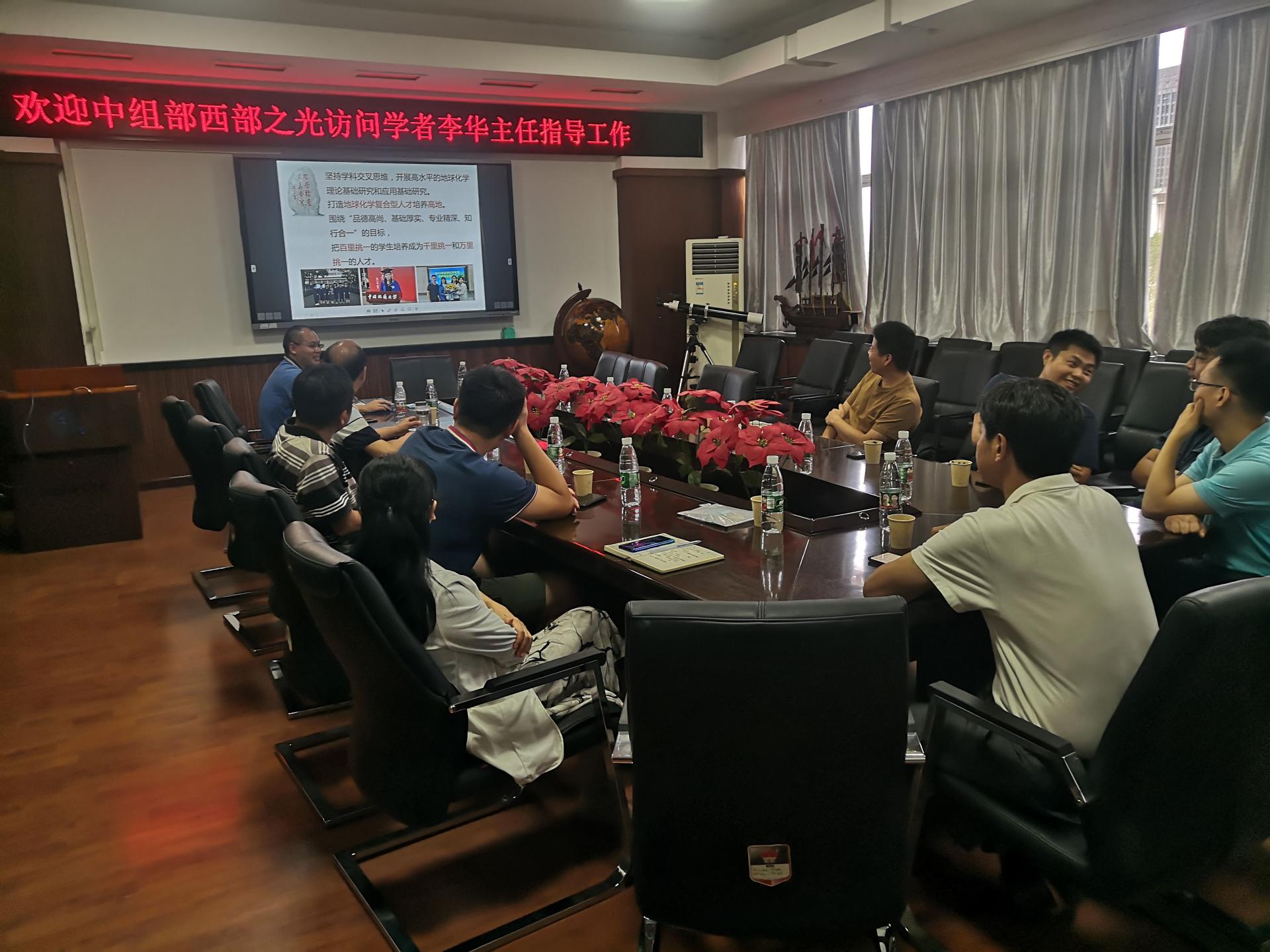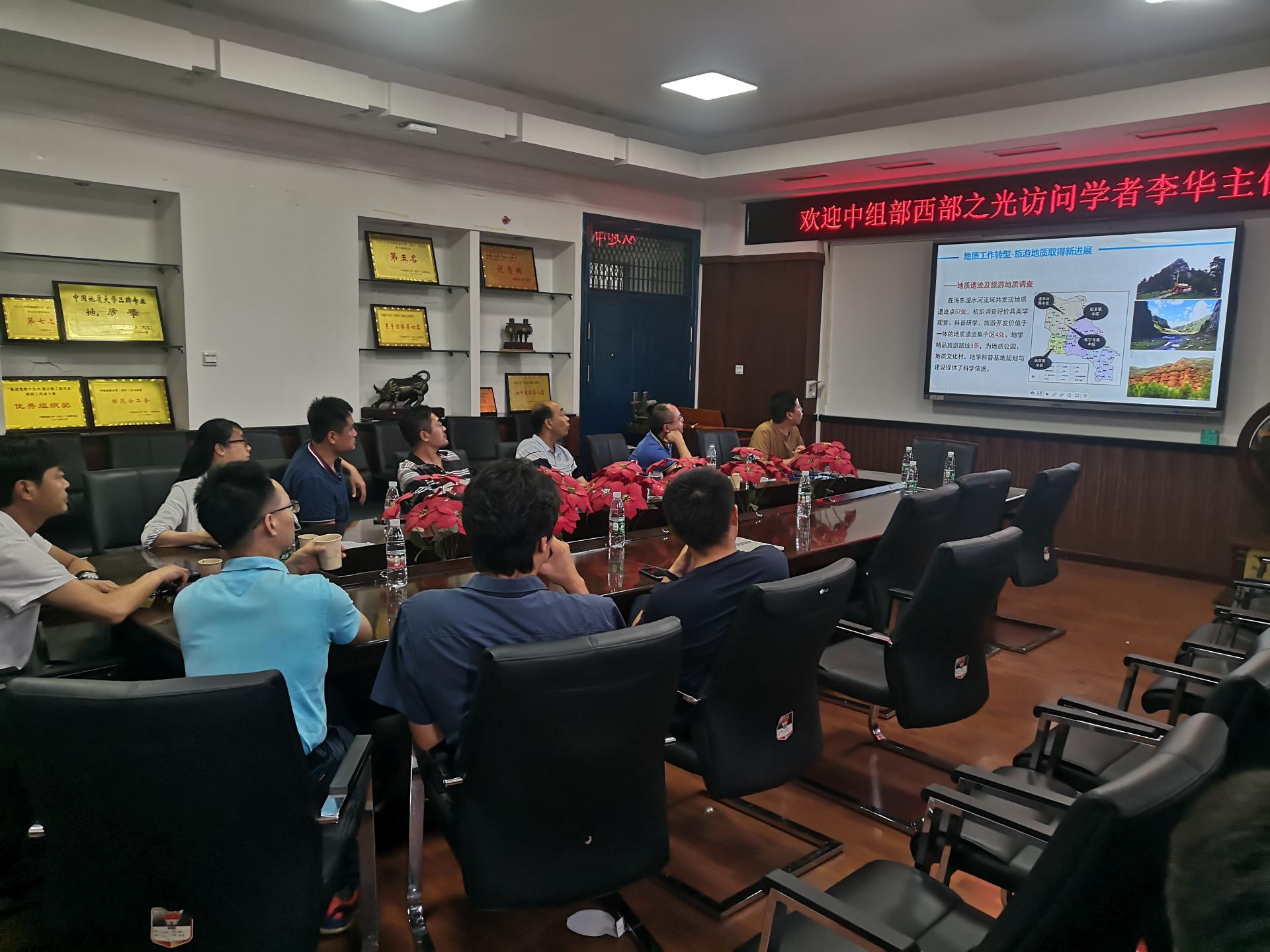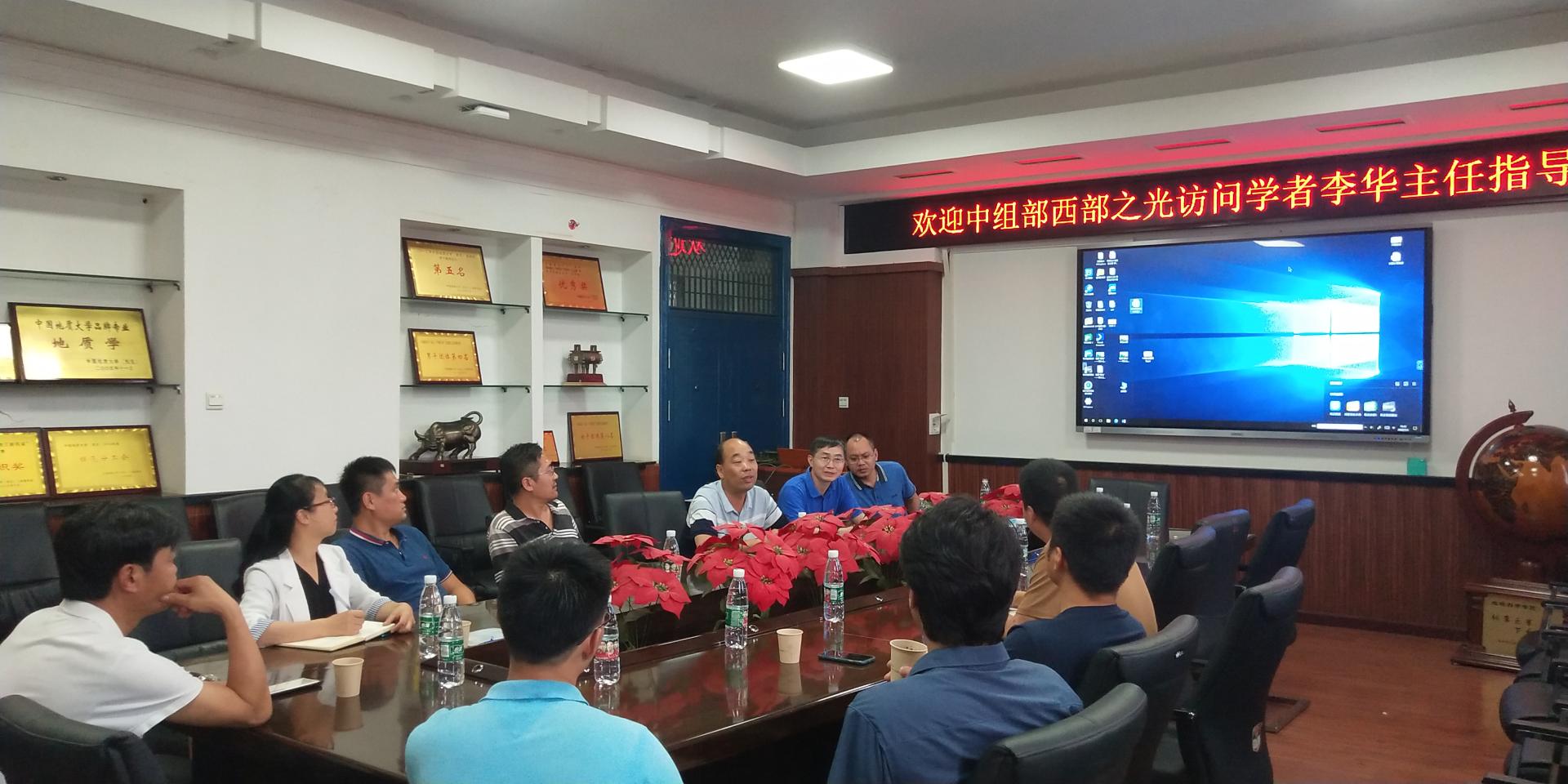 (通讯员 蒋钰鑫 董健彪 王微 摄影 张翼 董健彪)7月3日下午,应mg冰球突破 王信水教授邀请,青海省“西部之光”访问学者、青海省地质调查局资料室主任李华来访mg冰球突破 。mg冰球突破 党委书记周刚、副院长吴元保、地质调查研究院副院长吕占峰及地球化学系汤华云、宗克清、汪在聪、王信水、谢淑云、郭京梁、徐旺春等老师及学生代表与李华主任一起座谈交流。座谈会由吴元保副院长主持。
