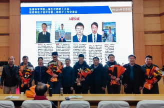 mg冰球突破 领导为荣休的龚一鸣教授(左)、新入职的五位老师献花(右)