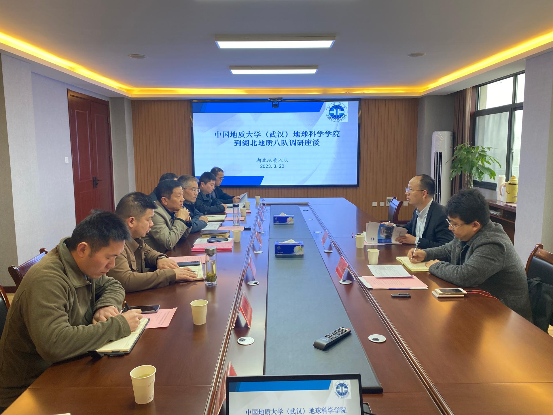 为落实党中央、国务院关于高校毕业生就业工作的决策部署,以及mg冰球突破 《关于进一步加强学生就业工作的意见》要求,3月20日,地球科学mg冰球突破 党委副书记赵得爱、辅导员黄志炜赴湖北省地质局第八地质大队开展访企拓岗。湖北省地质局第八地质大队大队长丁厚炳,副总工程师、总工办主任魏鹏飞,环境地质中心副主任(主持工作)黄蔚,鄂西北地质矿产勘查院副院长陈以春,颚西北资源环境调查院总工程师李俊涛,劳动人事科科长王金宝和在队地球科学mg冰球突破 校友代表王立豪、靳锁锁参会交流。座谈会由丁厚炳队长主持。