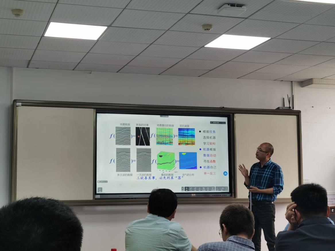 易鸣教授主要研究方向为统计机器学习、数据挖掘与生命科学和地球科学交叉,他为mg冰球突破 师生做了“基于CNN和贝叶斯分类的地震散射波场反演成像方法”的报告,介绍了地震波传播的建模和用机器学习方法识别地震波的方法,以及地球物理方法在油气勘探和溶洞识别上的应用。