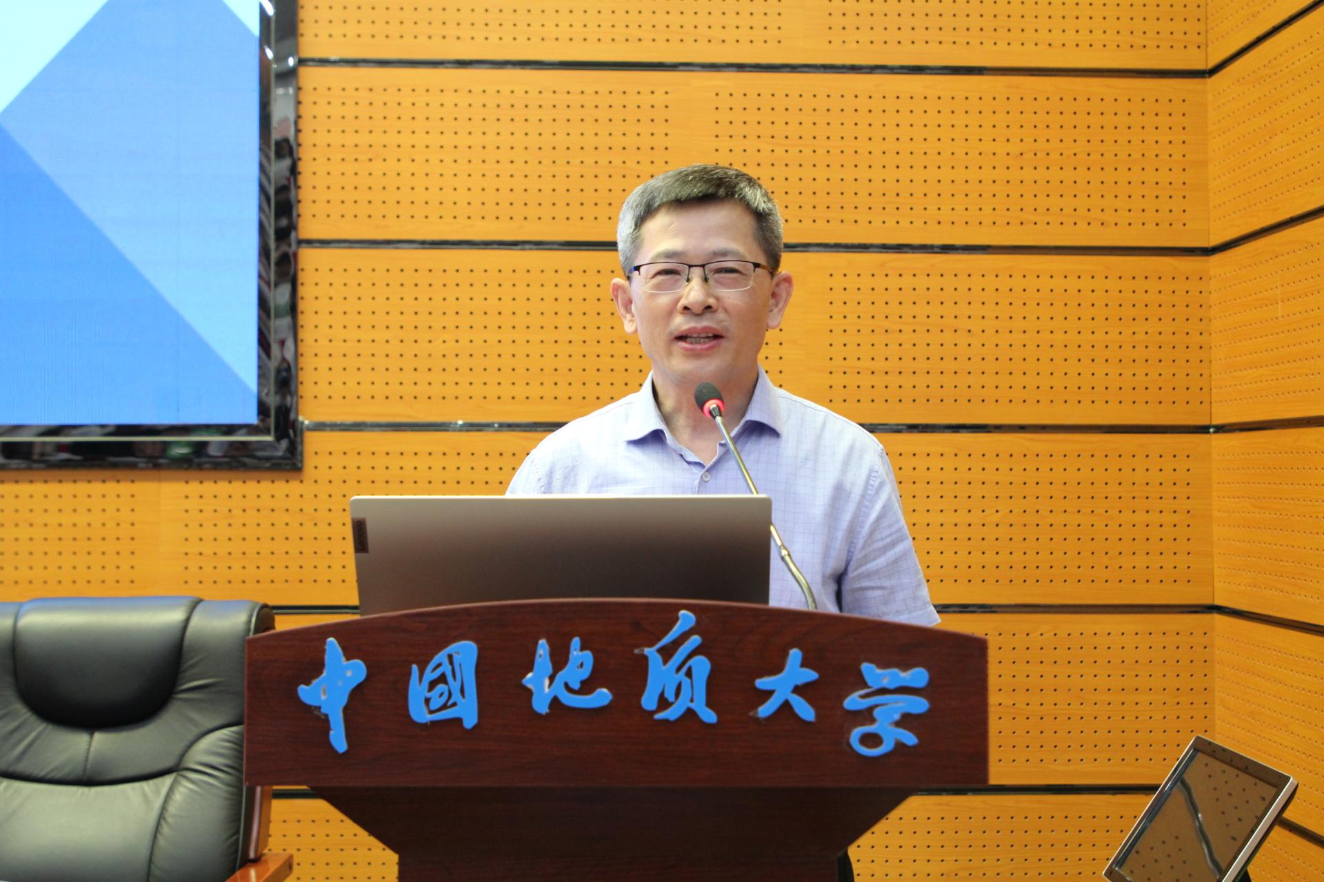 地球科学mg冰球突破 党委书记周刚宣读《地球科学mg冰球突破 关于成立“名师伴行”工作室的通知》,并介绍工作室建设情况。工作室由国家级和省部级教学名师团队、“全国高校黄大年式教师团队”、楚天园丁奖教师团队等负责老师组成,通过专题讲座、学业咨询、师生午餐会等活动为学生们提供服务,助力学生全面成长成才。