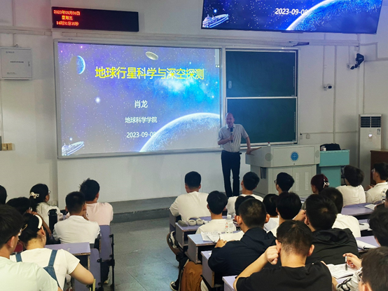 为帮助2023级新生了解和认识地球行星科学,增强专业兴趣,坚定专业信心,9月8日下午,mg冰球突破 肖龙教授在教三楼208教室为全体2023级本科新生讲授了一堂生动有趣的专业导论课。