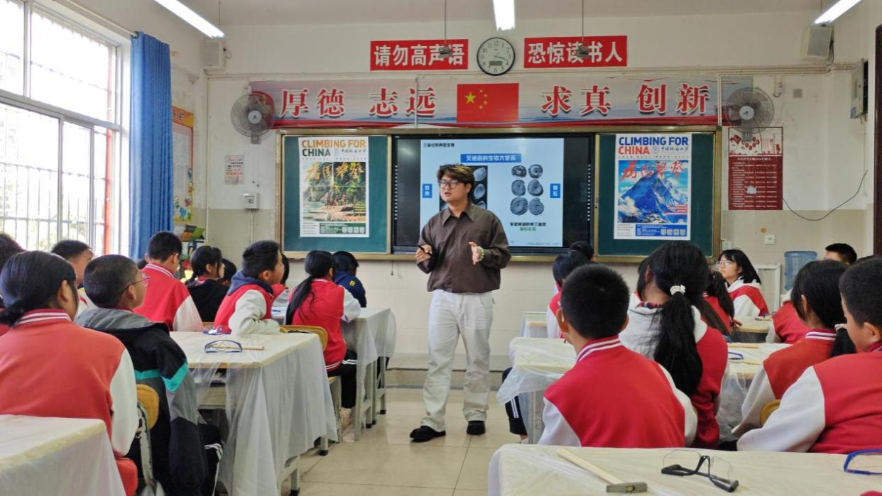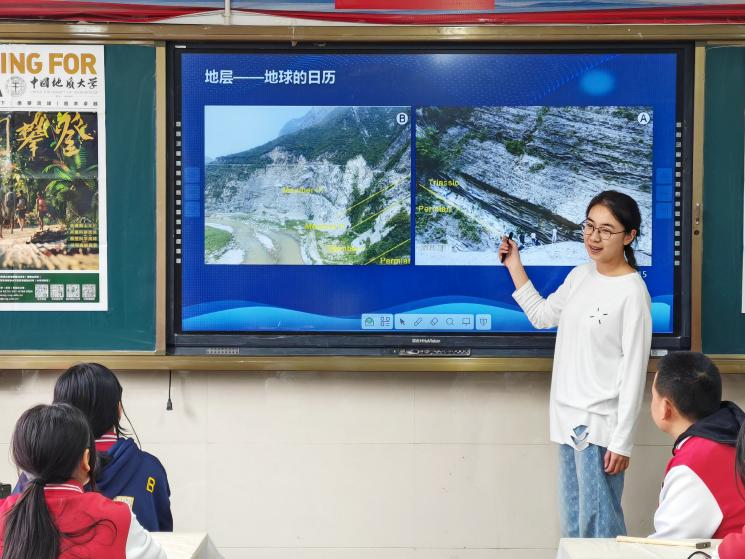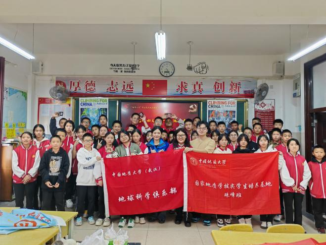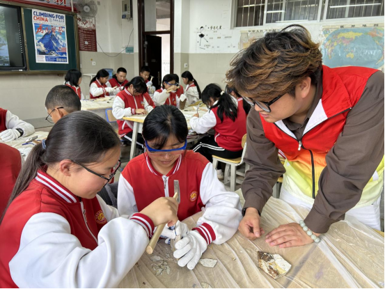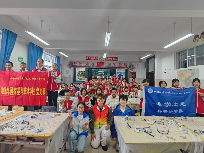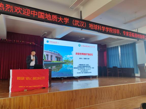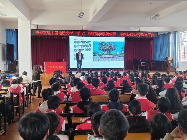 11月21日,mg冰球突破 “地学之光”科普讲解队走进云南省楚雄龙江中学,与中国地质mg冰球突破 (武汉)第26届研究生支教团联合举办“把地球故事讲给你听”系列科普活动,旨在大力宣传弘扬科学家精神,引导广大中学生树立远大理想。中国地质mg冰球突破 (武汉)地球科学mg冰球突破 教授马昌前、地球科学mg冰球突破 党委副书记赵得爱、地球科学mg冰球突破 “地学之光”科普讲解队成员姜昕、李槟馨、罗明辉、李月如参加本次活动。
