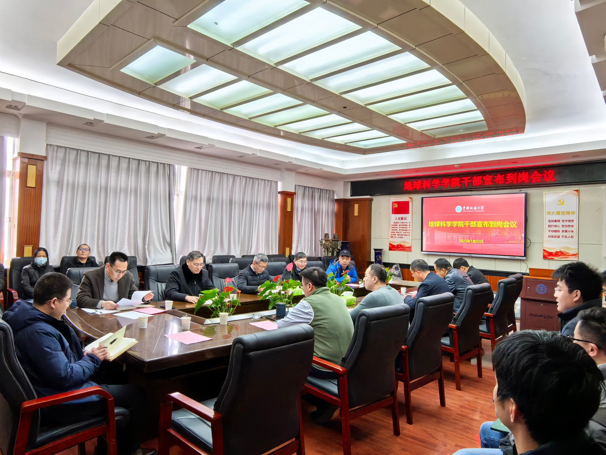 2025年1月22日下午,地球科学mg冰球突破 新任领导干部到岗履职宣布会在主楼308举行。校长李建威,党委组织部副部长冷再心,地球科学mg冰球突破 领导班子成员、三级单位党政负责人和部分教师代表参加会议。会议由党委组织部副部长冷再心主持。