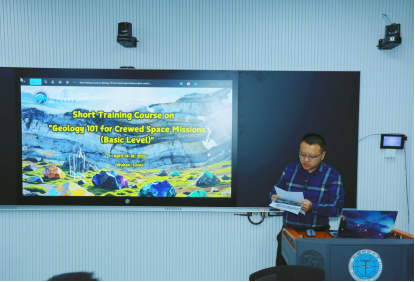 中国地质mg冰球突破 (武汉)地球科学mg冰球突破 的黄俊教授主持了4月14日的开班仪式并简短发言:深空探测任务的宇航员非常有必要开展专业的地质学训练。上个世纪阿波罗任务、现在的阿耳忒弥斯计划及欧洲空间局的载人探测任务都有专业的地质训练,这样的训练可以帮助宇航员提升探测任务的科学产出。