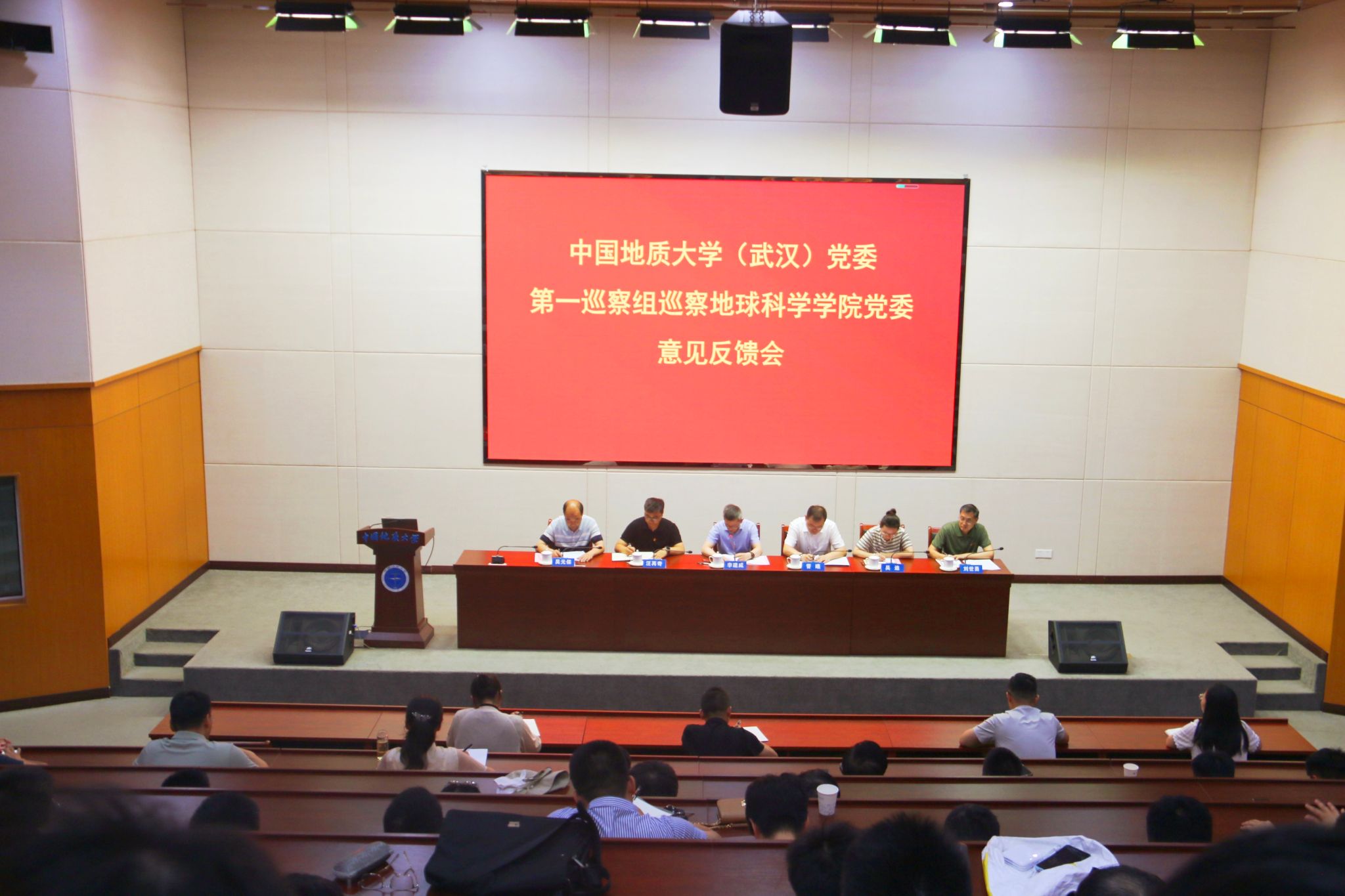 校党委副书记、校长李建威同志,党委巡察办主任晋曦同志,巡察组组长资源mg冰球突破 党委书记汪再奇同志,副组长机电mg冰球突破 党委副书记吴迪同志,巡察组成员张健同志、高思宇同志、陈文婷同志、高为同志,地球科学mg冰球突破 领导班子全体成员参加反馈会议,mg冰球突破 全体教职工、民主党派人士和学生代表等列席会议。