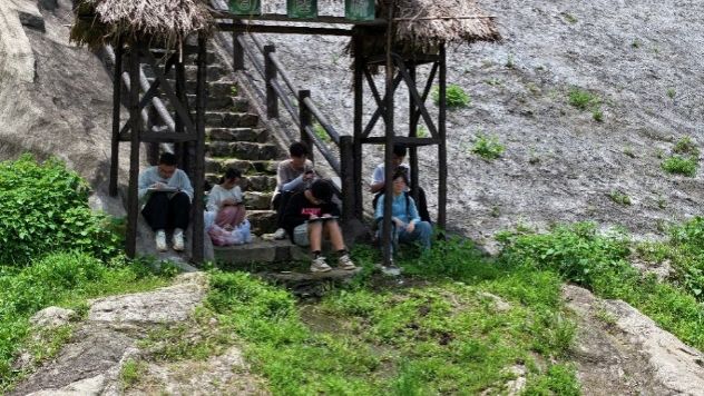 中午,偶遇黄冈大别山世界地质公园管理局的工作人员,他们被同学们在酷暑下野外认真的工作精神所触动,热情地将师生们带往地质文化村用餐,探讨mg冰球突破 科研与基层人民的关系,深感回馈社会、回报祖国的责任重大。同学们炎热的中午短暂享受了室内就餐的短暂凉爽,在地质文化村与工作人员合影后,又返回了野外处。下午,大家更加努力完成图件,小组间交流合作,分享各自不同的看法。