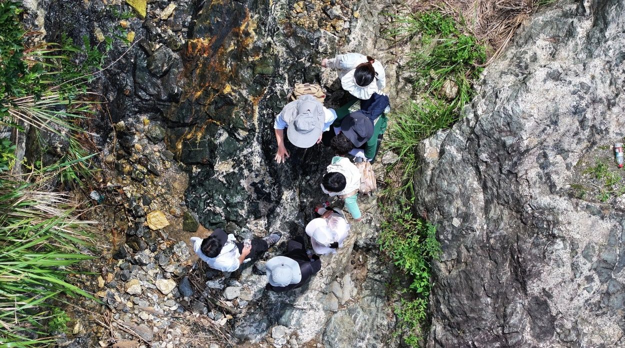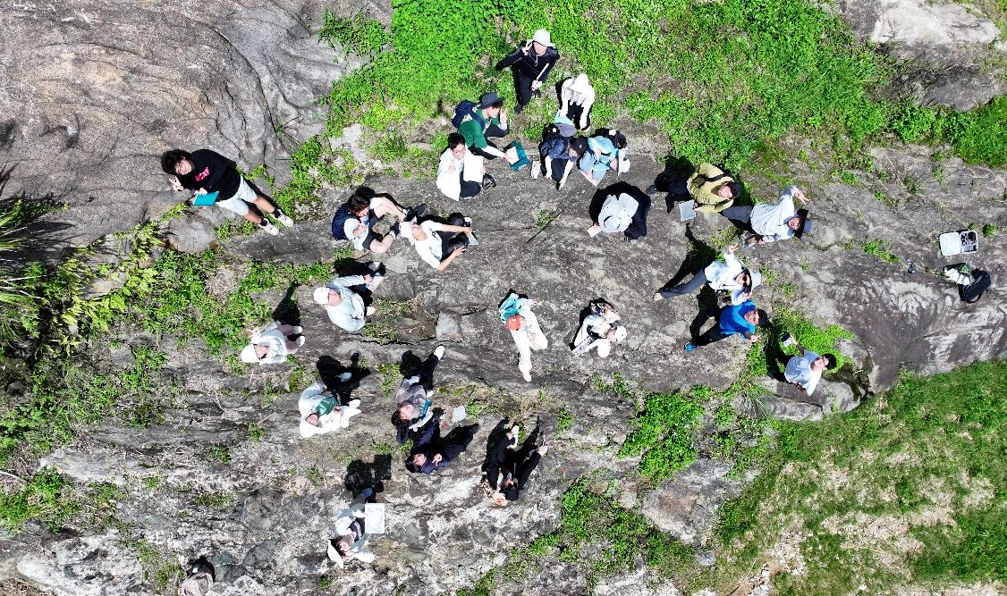 师生在混合岩区域工作合影