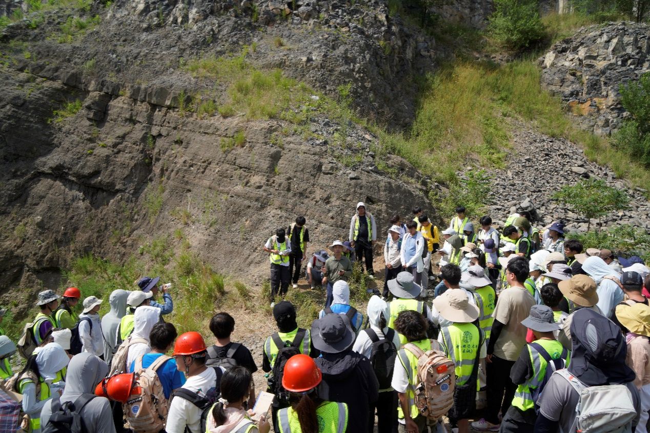 25日上午,院领导全程参与福山马山火山实习路线,指导野外地质教学。院长吴元保通过解析玄武岩的矿物组成、构造特征及橄榄岩包体等关键要素,揭示岩浆源区性质差异,引导学生思考地幔包体对深部地幔组成的指示意义,现场回答同学们的提问。他勉励同学们:“普通人观山水只见风景,地质人读山水需解其韵——要透过现象洞察地球演化的密码,领悟地质现象背后的科学真谛。”