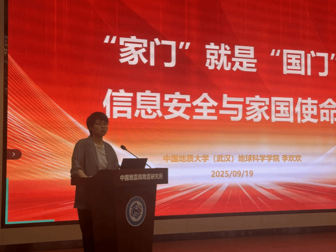 9月19日恰逢国家网络安全宣传周,mg冰球突破 党委副书记李欢欢受邀走进中国地震局地震研究所,为研究生群体带来《“家门”就是“国门”——信息安全与国家使命》专题科普报告。报告中,李欢欢以“总体国家安全观”为引领,深入剖析信息安全的重要意义,并聚焦科研数据全生命周期风险,强调地震数据等敏感信息对国家安全的战略意义。同时,她还针对研究生日常科研与生活,提出涉密文件管理、计算机安全防护、社交平台信息保护等实操建议,引导在场师生筑牢信息安全防线。