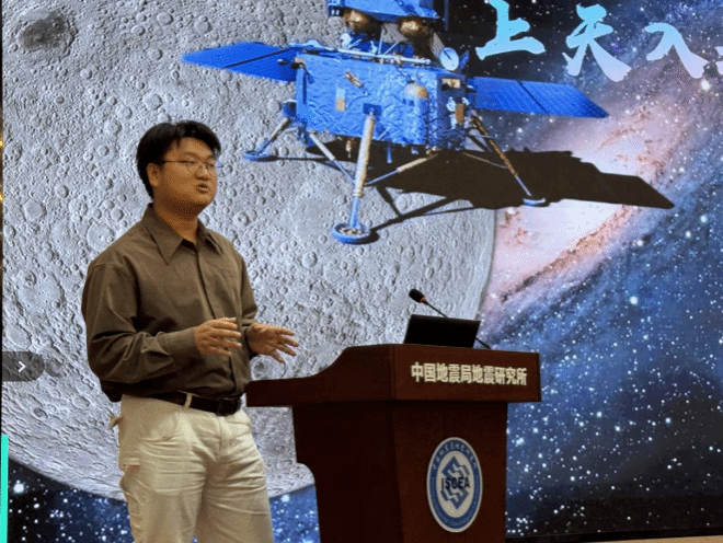 随后,mg冰球突破 “地学之光”科普讲解队成员姜昕接续开讲,以《上天入地,地球化学》为题展现学科交叉魅力。他从嫦娥六号月壤研究切入,结合国际顶级期刊发表的科研成果,讲解月壤中氦-3资源价值、42亿年高铝玄武岩与28亿年低钛玄武岩所记录的月球火山活动史,同时介绍大陆地壳平均成分研究等地球化学核心内容,让在场听众直观感受“从月球到地球”的地学探索脉络,有效促进院所学科交流。
