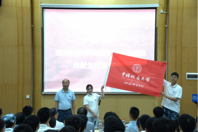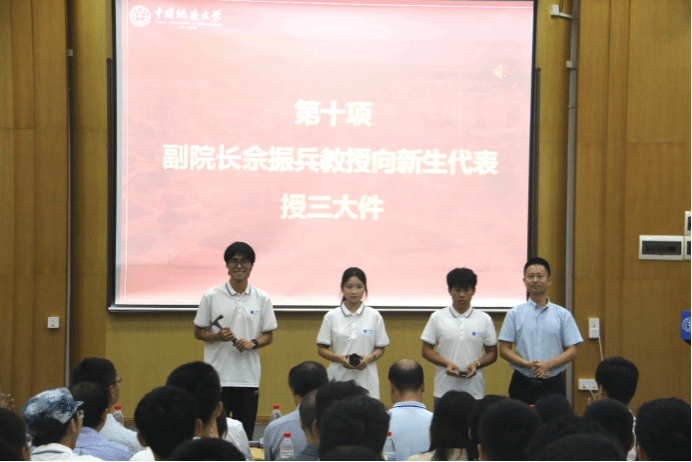副院长佘振兵教授向新生代表授予“地质三大件”