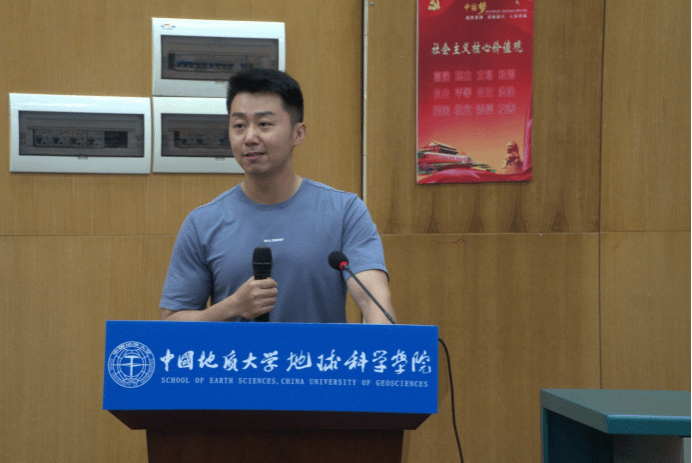 011254班班主任李文帅教授作为教师代表发言。他结合自身mg冰球突破 经历,分享了对mg冰球突破 阶段的深刻理解,鼓励新生从“发现自我”和“淬炼自我”两个维度出发,在多样化的学术探索中学会规划人生,在科研实践与野外考察中勇于尝试未知,更要在面对挑战时不畏困难,于挫折中锤炼坚韧品格。他寄语同学们以青春为墨,在南望山下书写成长华章,让奋斗的光芒照亮学术征途。