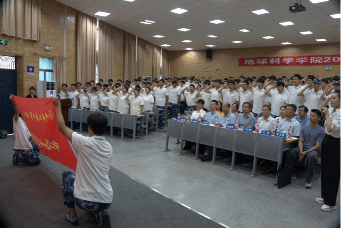 典礼上,冯艳同学带领全体新生庄严宣誓。“志存高远,尊师重道,刻苦学习,钻研地球科学……”铿锵有力的誓言回荡在整个会场,字字千钧,传递出地学新人“山河为师、地质报国”的初心与使命。