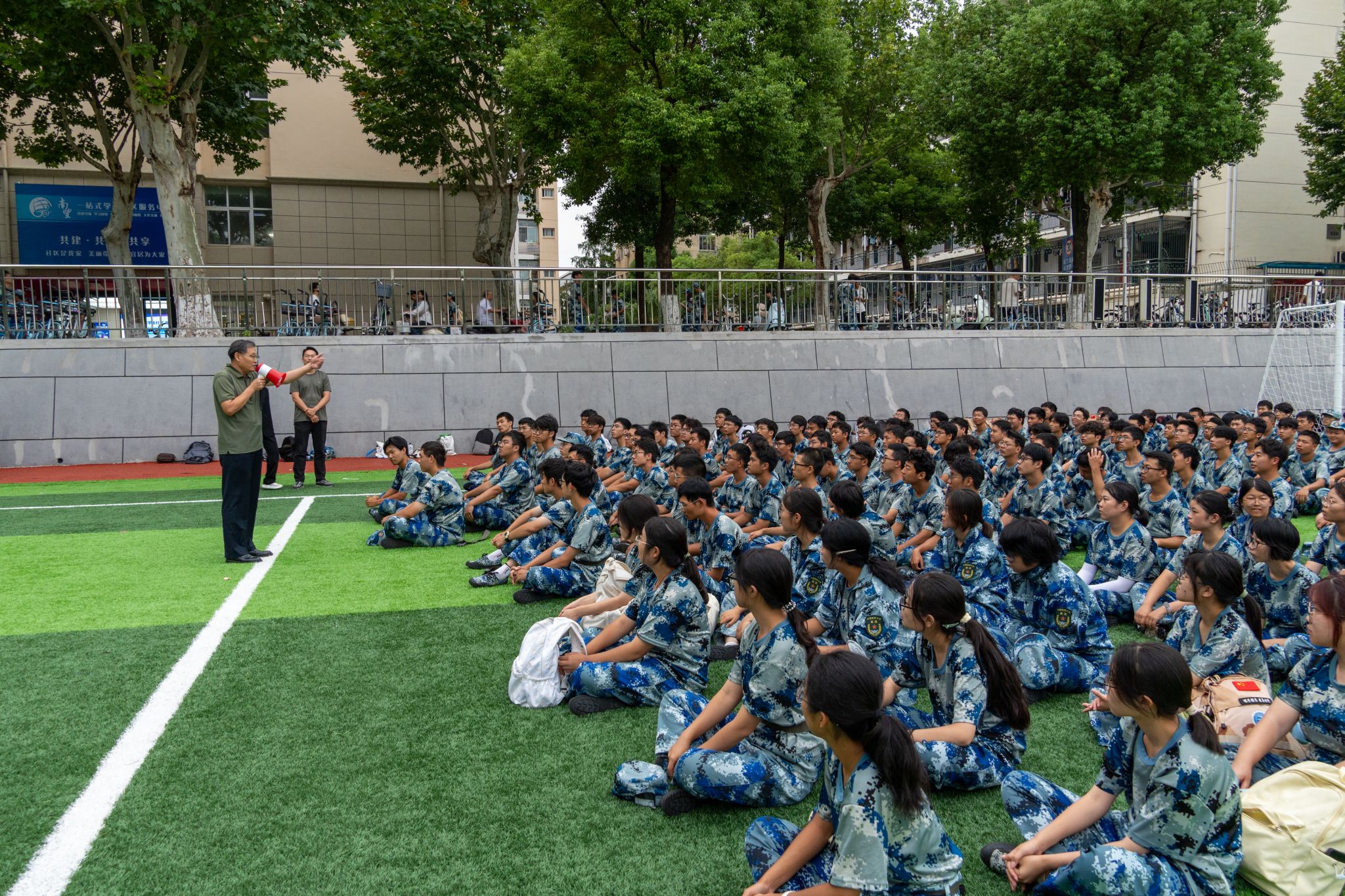 秋高气爽,微风和煦。9月18日下午,地球科学mg冰球突破 党委书记刘世勇、副书记李欢欢与2025级班主任及学工组辅导员老师们一同前往训练场,亲切看望正在参加军训的2025级全体同学,为同学们送去暖心关怀。