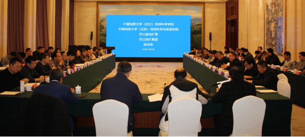 河北地矿集团总工程师冯创业介绍了与会嘉宾情况,并代表集团对各方的到来表示热烈欢迎。他表示,河北地矿集团高度重视与高校的协同合作,希望以此次交流为契机,进一步深化与两校在地质勘查、科技创新和人才培养等方面的合作。