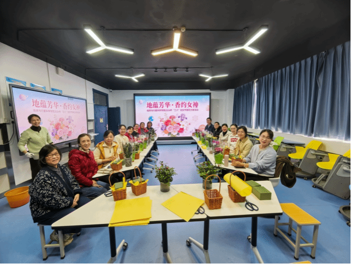 创作完成后,女教职工们纷纷展示自己的花艺作品,分享创作思路与心得,彼此交流品鉴。最后,大家手持亲手制作的花艺作品集体合影,并将作品带回与家人共赏,让花香延续,美好留存。
