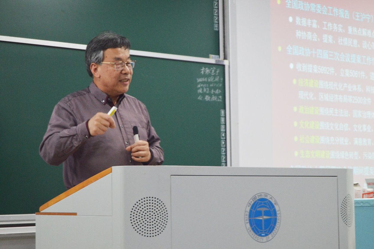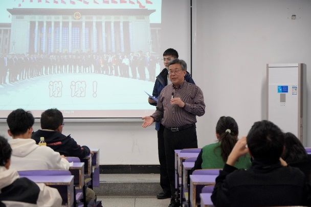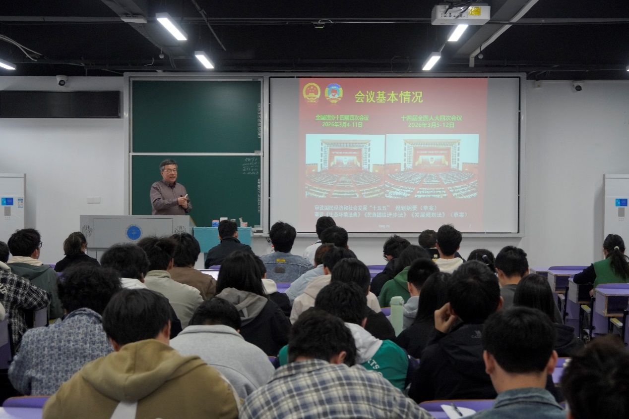 活动坚持党建引领、思想铸魂,特邀全国政协委员童金南教授为在场党团员青年作全国两会精神专题宣讲。童金南教授结合亲身参会经历,系统阐释了全国两会的基本框架、核心要义与重大意义,深入解读政府工作报告、“十五五”规划纲要中的重点部署,围绕国家经济发展、科技创新、生态环保、民生福祉、资源能源安全等关键领域展开细致讲解。宣讲紧密结合地质学专业特色,深刻指引同学们将专业学习与国家重大战略需求深度融合,引导广大团员青年锚定报国方向、深耕专业领域,勇担新时代地学青年的责任与使命。互动交流环节,同学们围绕“十五五”绿色低碳发展对地质学科建设、青年人才培养的新要求等话题踊跃提问,童金南教授逐一耐心解答,进一步帮助同学们明晰了专业发展与国家战略同频共振的成长路径。