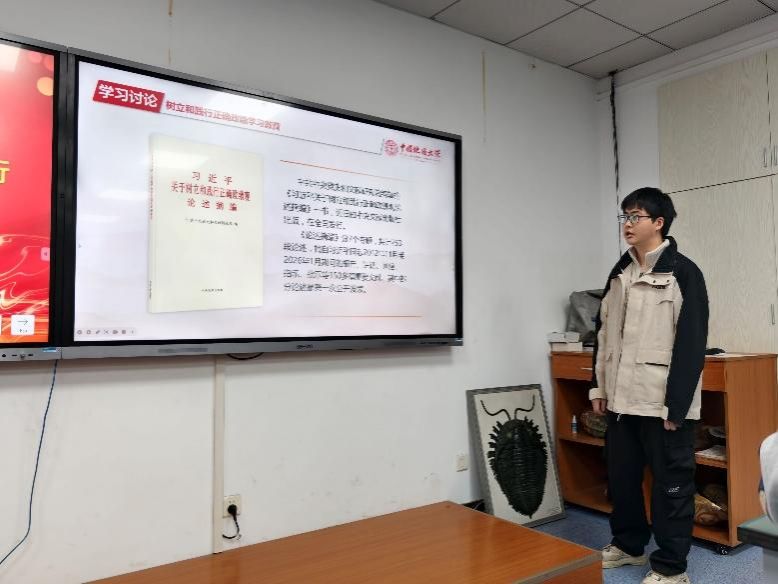 为深入学习贯彻全国两会精神,扎实开展树立和践行正确政绩观学习教育,激励广大党员在新时代强国建设中担当作为,2026年3月26日下午,地球生物学系党支部与金钉子党支部在主楼604教室联合举办3月主题党日活动。活动特邀第十三届、十四届全国政协委员童金南教授出席并解读2026年全国两会精神,地球与行星科学mg冰球突破 01G241班本科生列席会议。主题党日由地球生物学系党支部书记叶琴同志主持。
