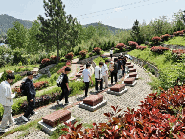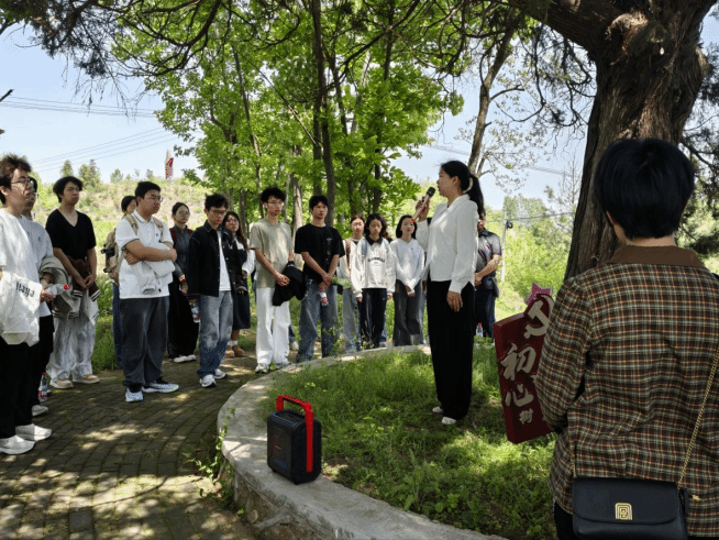 随后,大家来到枝繁叶茂的“初心树”下,在讲解员的深情讲述中,秦光远将军和55名烈士的英勇事迹仿佛穿越时空,将大家带回了那段军民同心、浴血奋战的峥嵘岁月,让在场的每一位师生都深受触动。