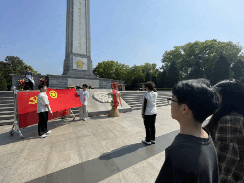 红安县作为黄麻起义的策源地、鄂豫皖革命根据地的核心区域,承载着厚重的革命历史,积淀了深厚的红色底蕴,是开展革命历史教育、锤炼党性品格修养的生动实践课堂。上午,师生队伍抵达红安县黄麻起义和鄂豫皖苏区纪念园。革命烈士纪念碑巍峨耸立,镌刻着无数革命先烈浴血奋战、为国捐躯的峥嵘岁月。全体人员怀着无比崇敬的心情,整齐列队、肃立默哀,向革命先烈敬献花篮,深深鞠躬致敬,以庄重肃穆的仪式深切缅怀为民族独立、人民解放英勇献身的革命英烈,致敬不朽的革命忠魂。仪式尾声,全体教师党员高举右拳,重温入党誓词,字字铿锵、句句赤诚,重温初心使命,坚定为共产主义事业奋斗终身的坚定信念;全体团员紧随其后,庄严重温入团誓词,以青春之名立下奋斗誓言,彰显新时代青年团员听党话、跟党走的坚定决心。铿锵的誓言回荡在革命广场上空,既是对革命先烈的深情告慰,更是全体师生坚守初心、勇担使命的庄严承诺,进一步夯实了青年理想信念根基,凝聚了支部向心力。
