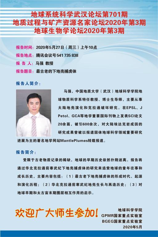 【5月27日】地球科学mg冰球突破 马强教授学术报告