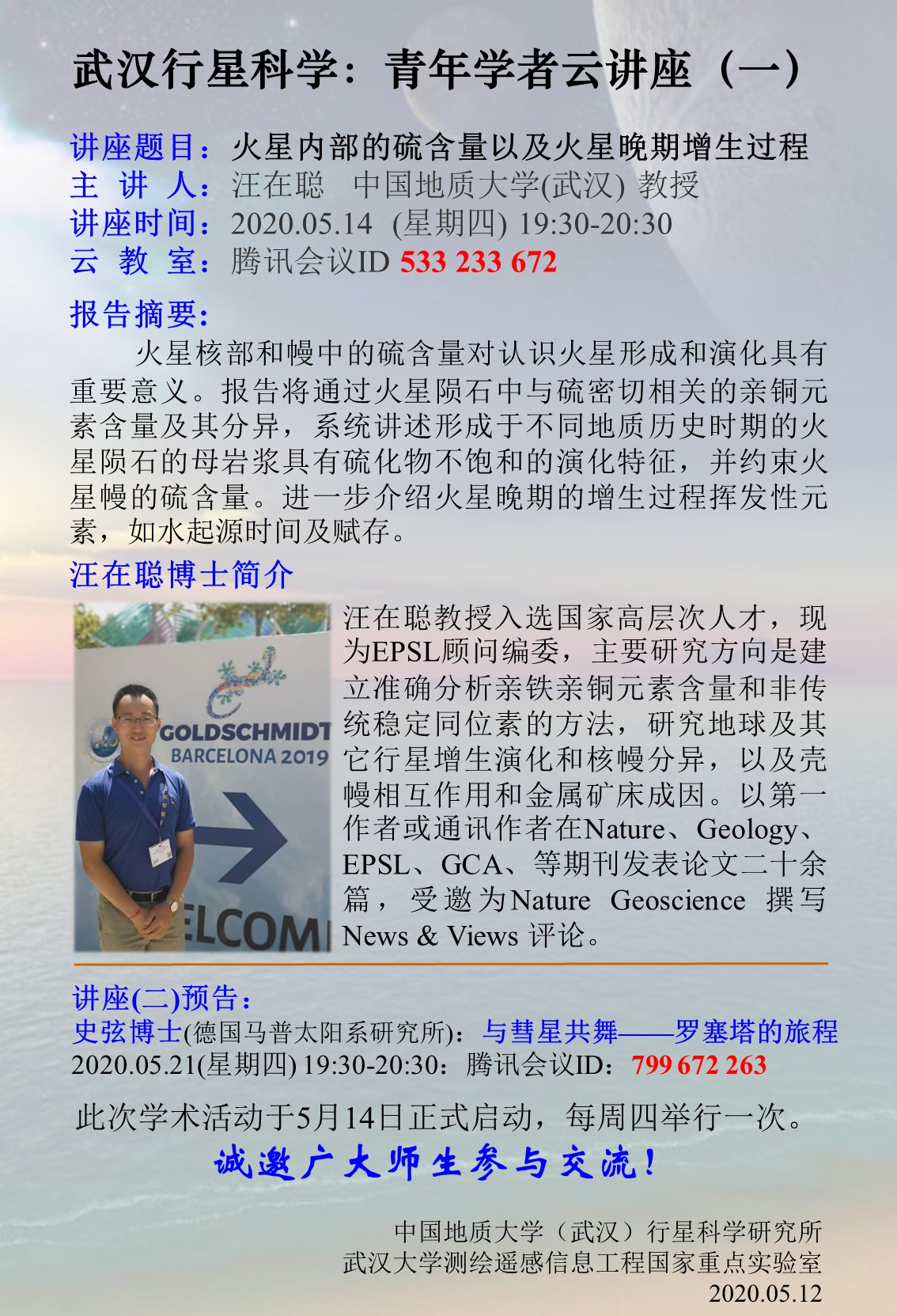 汪在聪教授主讲“武汉行星科学”讲座