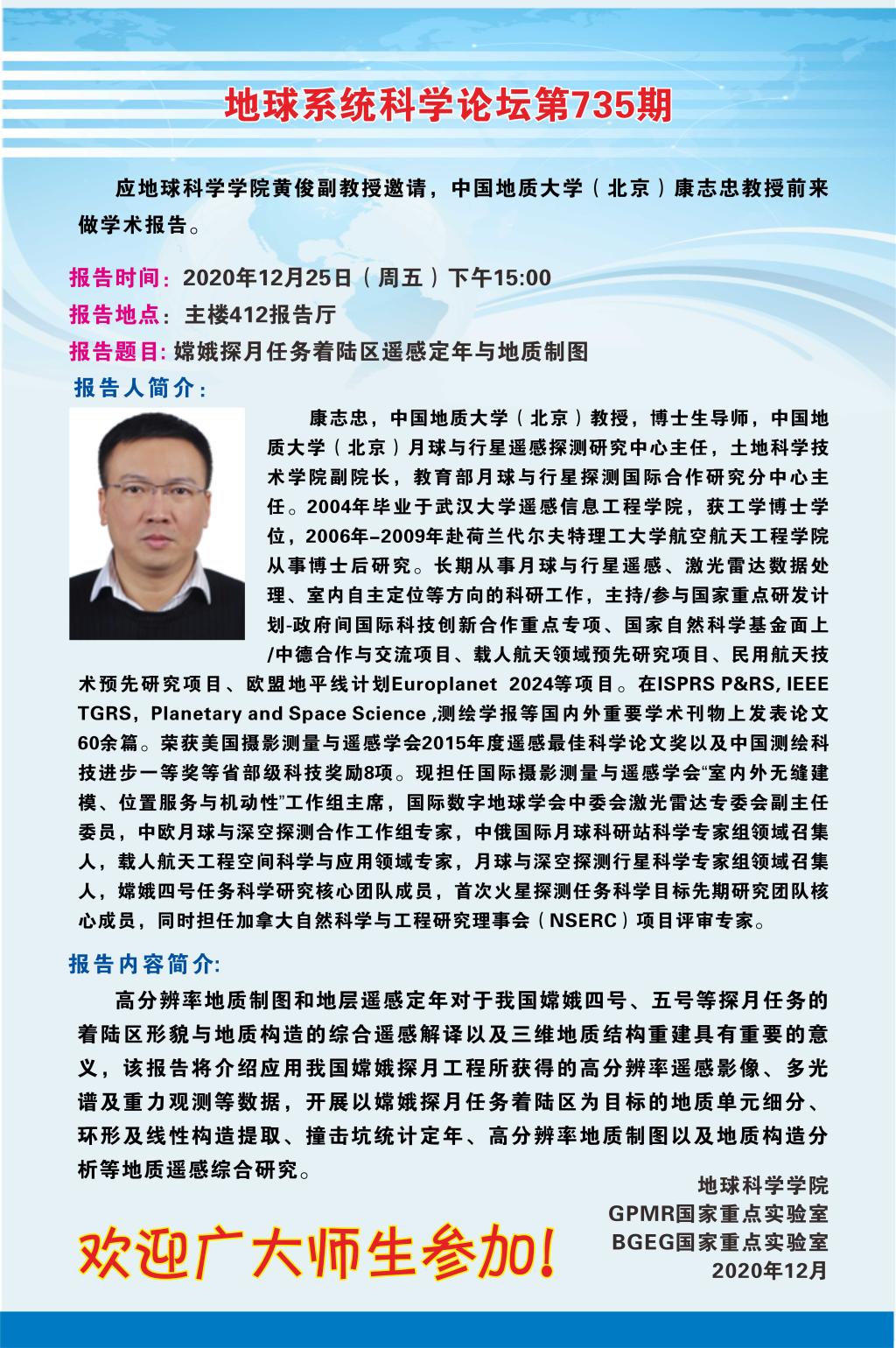 【12月25日】中国地质mg冰球突破 (北京)康志忠教授学术报告会