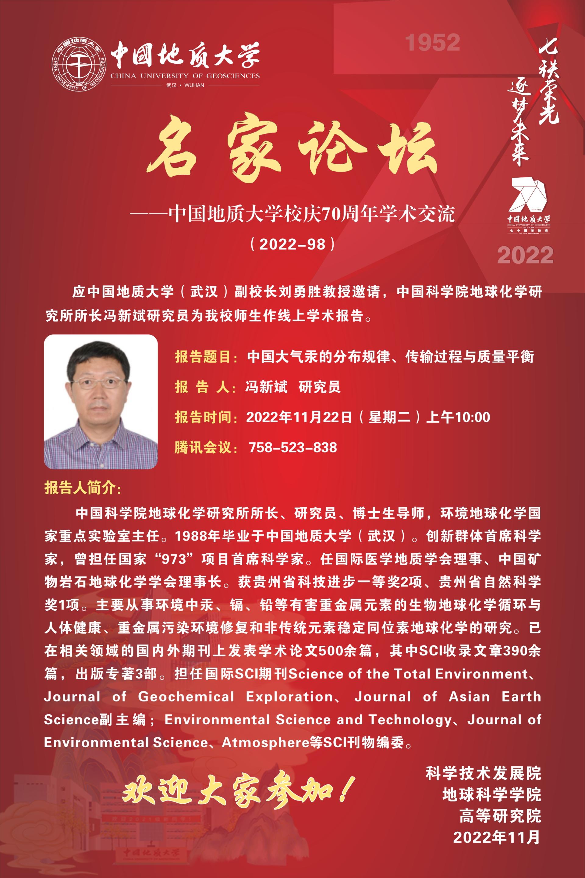 【11月22日】校庆系列学术活动---名家论坛:中国科mg冰球突破 冯新斌研究员