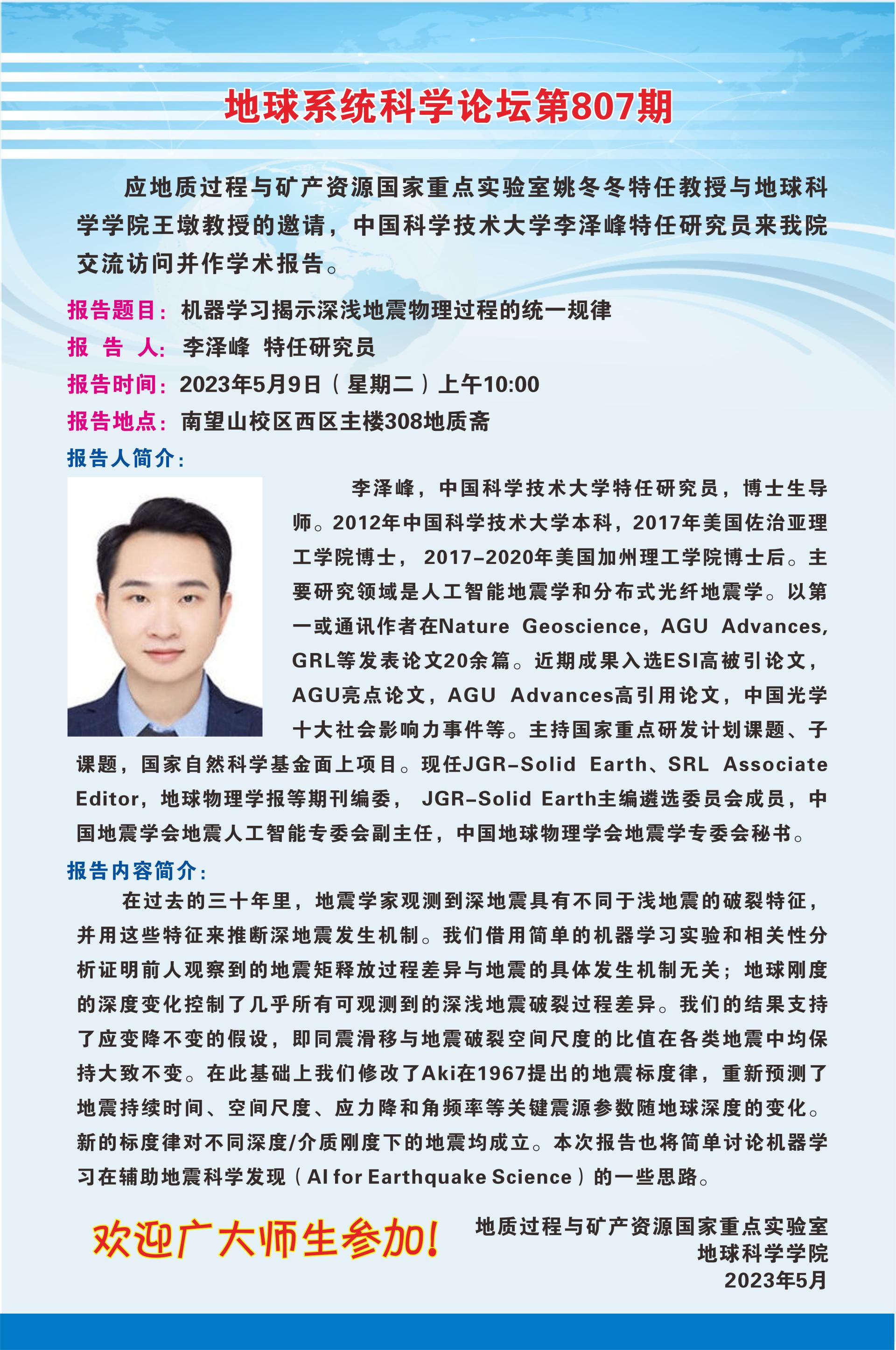 【5月9日】地球系统科学论坛(第807期)-李泽峰 特任研究员