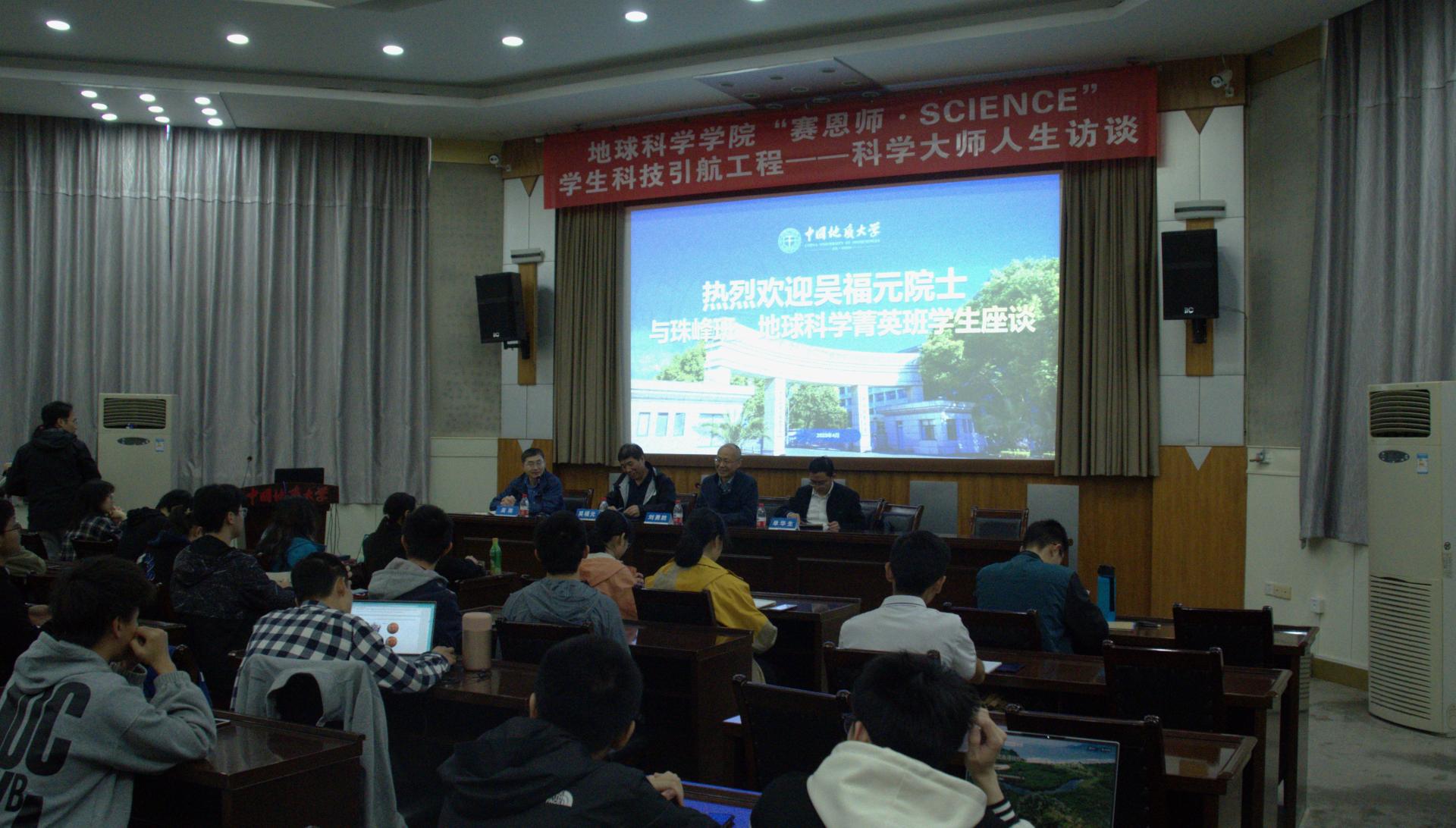 4月22日,在第54个世界地球日来临之际,中国科mg冰球突破 地质与地球物理研究所吴福元院士做客地球科学mg冰球突破 “赛恩师·SCIENCE”科学大师人生访谈,与珠峰班、地球科学菁英班学子座谈。副校长刘勇胜主持座谈,地球科学mg冰球突破 党委书记周刚、李四光mg冰球突破 常务副院长单华生参加座谈。
