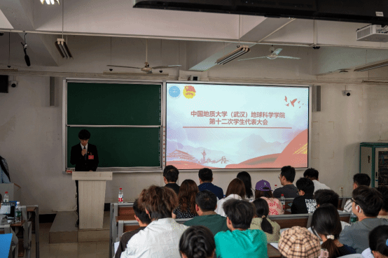 5月25日,地球科学mg冰球突破 第十二次学生代表大会在北综楼202教室召开。mg冰球突破 团委书记滕笑丽、mg冰球突破 辅导员秦傲老师、黄志炜老师,校学生会主席团成员阮继斌同学,与各年级学生代表130余人参加会议。大会由mg冰球突破 学生会主席团成员郝力师主持。