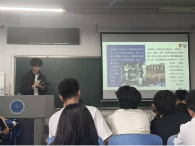 接着,来自第一团小组的黄欧盟同学以弘扬世运精神,展现青春风采为主题,介绍了2025年成都世运会的情况,其开幕式以无界舞台融合城市与赛事,中国体育代表团创参赛规模新高并斩获优异战绩;同时展示了赛事中的科技赋能与绿色低碳办赛理念,分享了世运会小青椒志愿者的服务故事,解读志愿服务精神,让大家感受到世运会上的青春活力与担当。