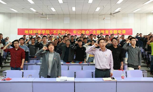 为扎实推进“不忘初心,牢记使命”主题教育,提升理论学习实效性,地球科学mg冰球突破 党委于10月31日下午在教三楼208 组织全院学生党员开展“不忘初心,牢记使命”主题党日暨专题党课活动,mg冰球突破 党委书记王甫,党委副书记张晓红,以及全体辅导员参加此次主题党日学习,本次主题党日由王珩主持。