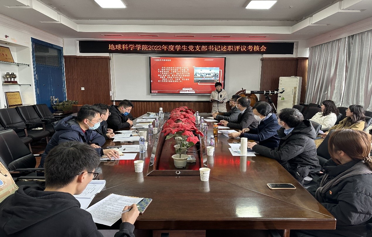 2月17日,地球科学mg冰球突破 2022年度学生党支部书记述职评议考核会于主楼412会议室举行。mg冰球突破 专职组织员闫鱼,mg冰球突破 党委书记周刚、副书记赵得爱,地球物质科学系党支部书记王连训,学工组辅导员、全体学生党支部书记参加会议。